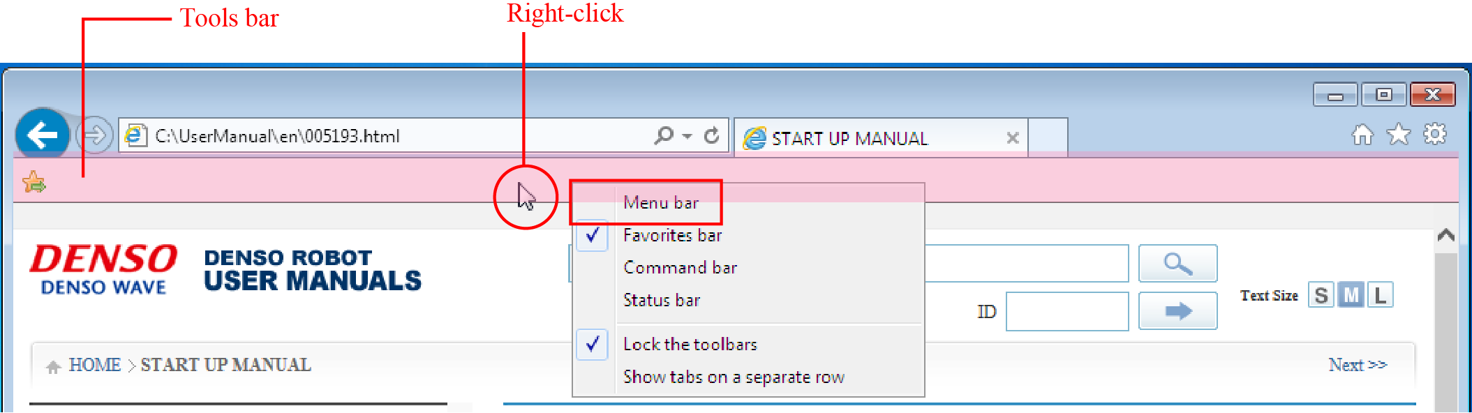 Right-click anywhere in the tool bar, select the checkbox of Menu bar.