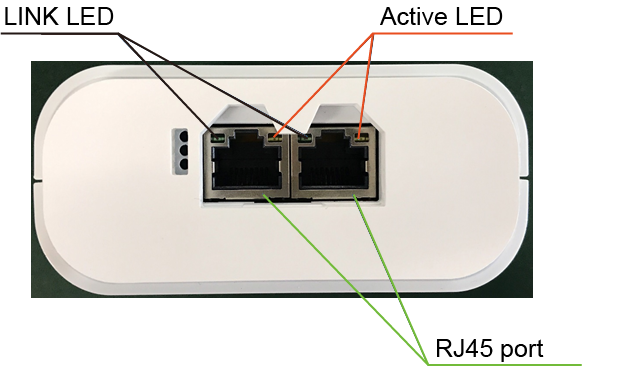 Field network interface module equips two RJ45 port. Insert a LAN cable into either of them.