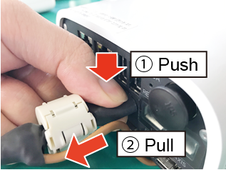 When you disconnect the cable of Field network interface module, with pushing the locking clip of the plug, pull it out. Avoid hard pulling. Doing so may damage the wire and/or break the locking clip.