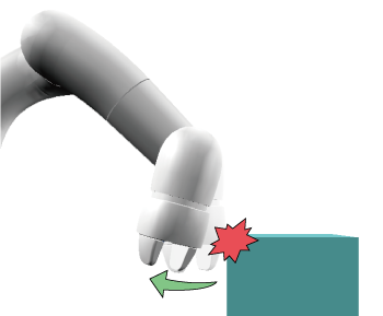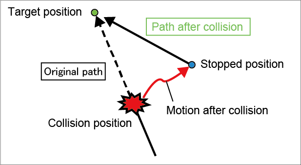 - Depending on the posture at collision detection, amount of the posture change by the axis free may be a little (not enough). In that case, it may be difficult to evacuate from the collision object compared with a case that amount of the posture change is a lot.