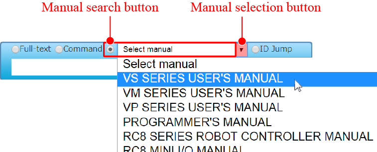 1Click [Manual search] button (The search type will set to "Manual search"). Click [Manual selection] button to select a manual. |