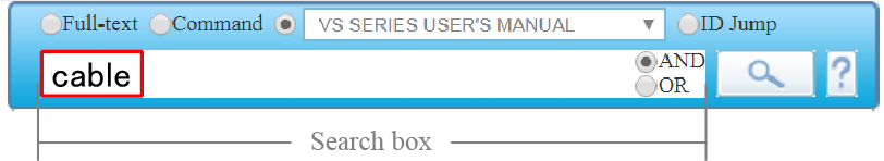 2Enter any text in the Search box to search. Note that this search covers all combinations of upper and lower case of entered alphabets. For example, if "Ab" is entered in the Search box, the search string will be "ab", "Ab", "aB", and "AB". |