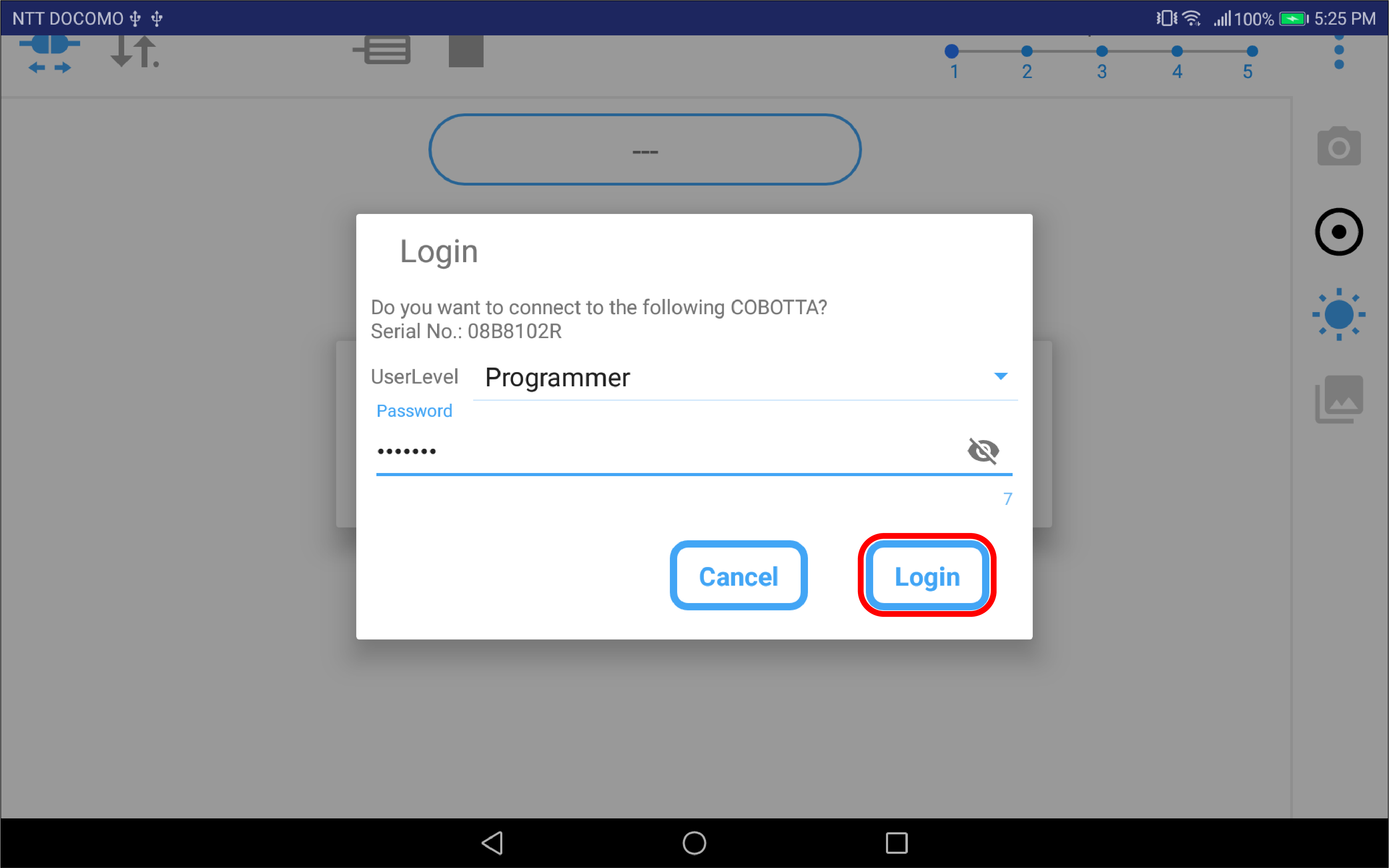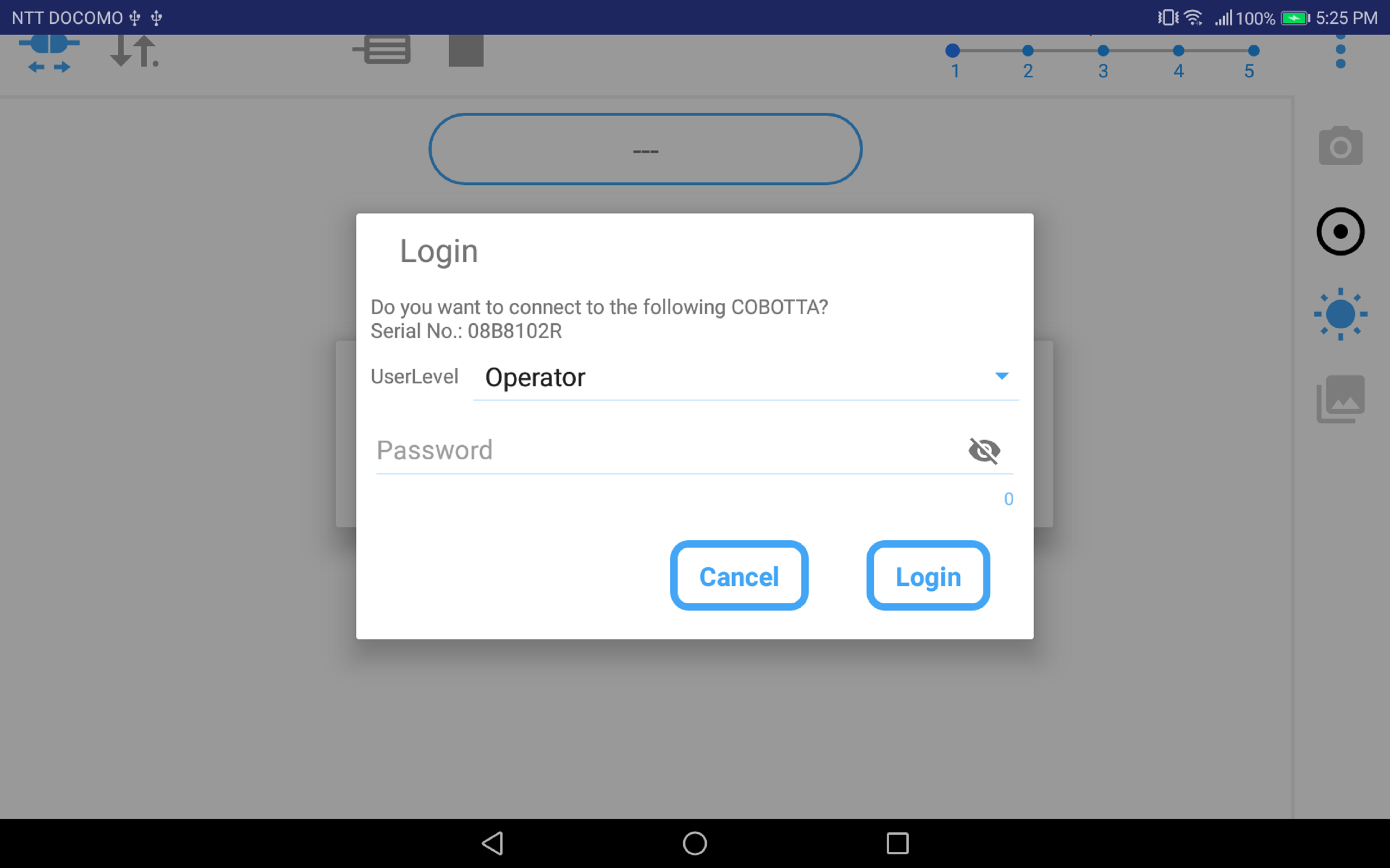 Therefore, to connect another tablet with COBOTTA, first cancel the connection with the current tablet in use and then connect with a new tablet according to the connection procedure described above.