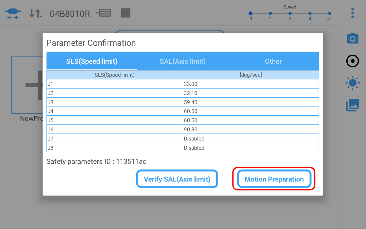 When the Parameter Confirmation window is displayed, connection with COBOTTA has been completed.
