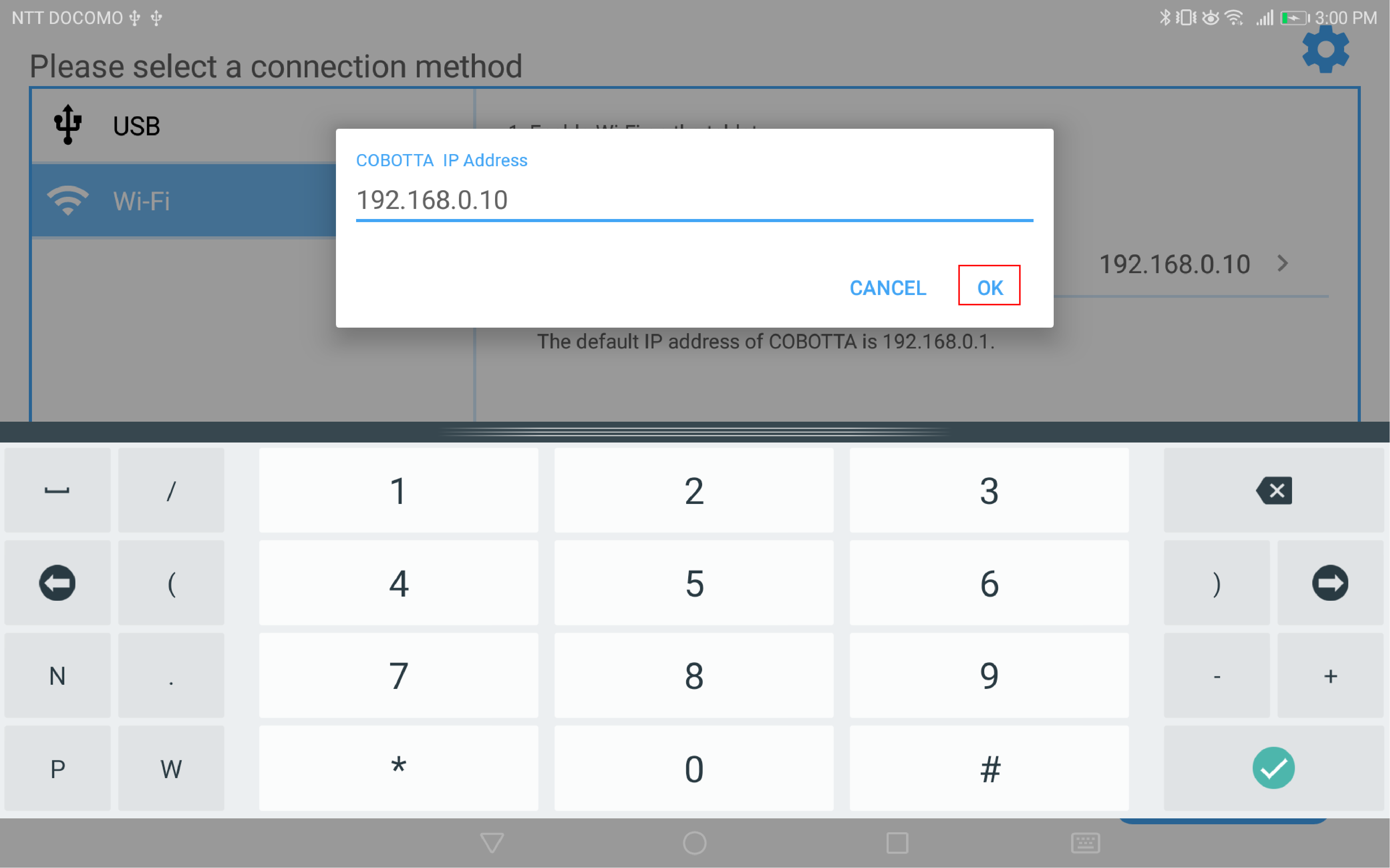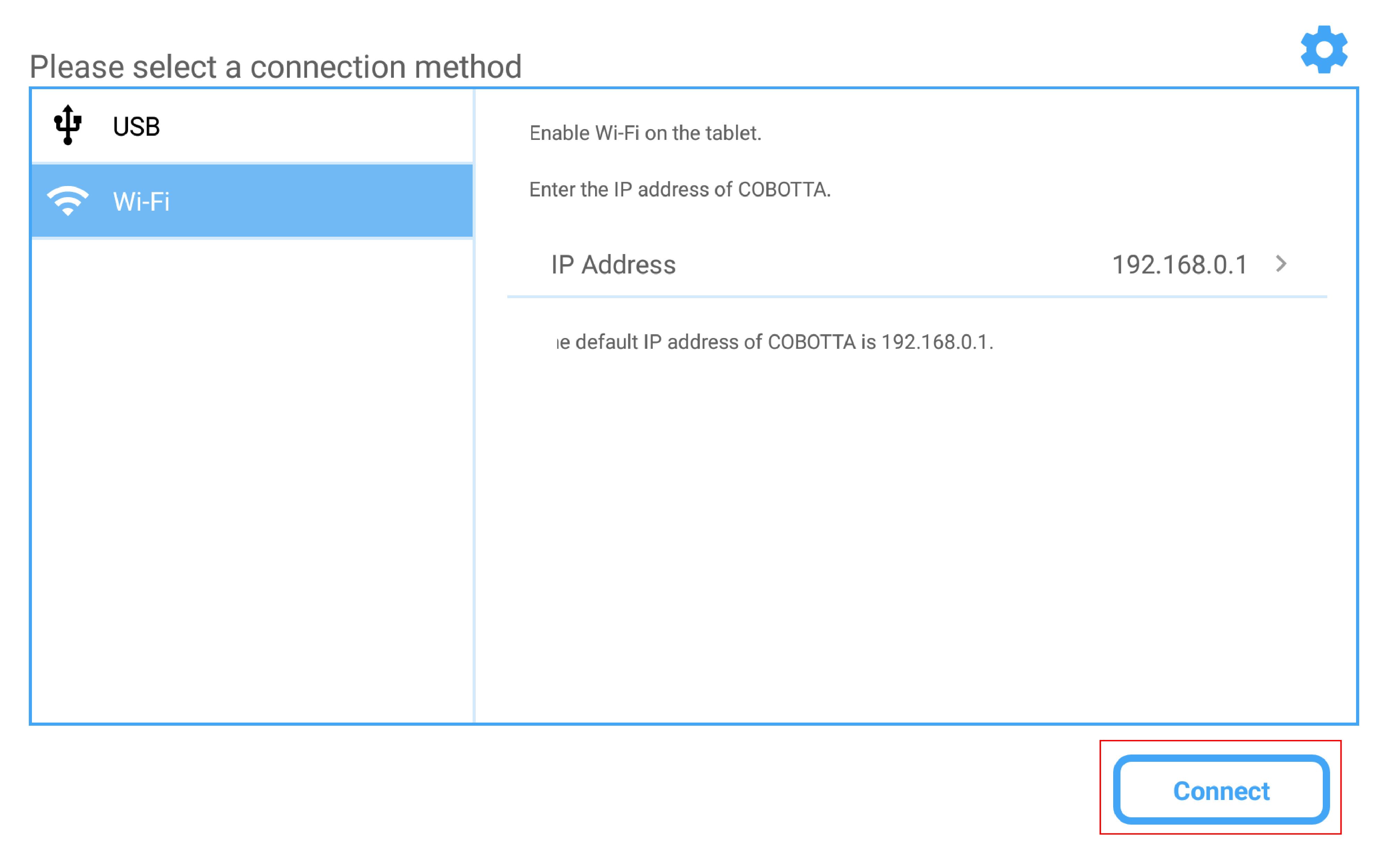 Refer to "Preparing Wi-Fi Connection" if Wi-Fi connection setting (setting for wireless LAN router or IP address of COBOTTA, etc.) is not configured yet.