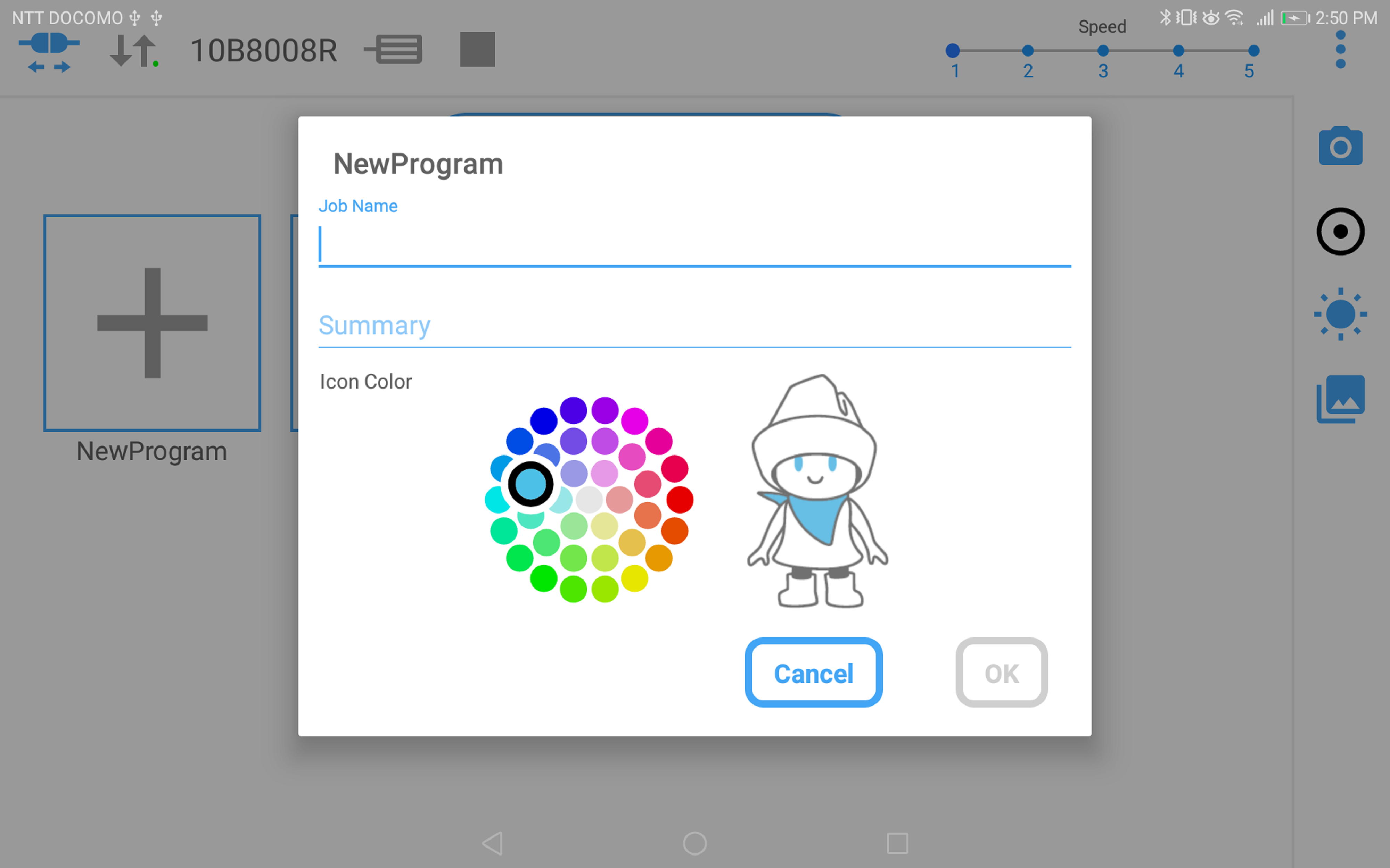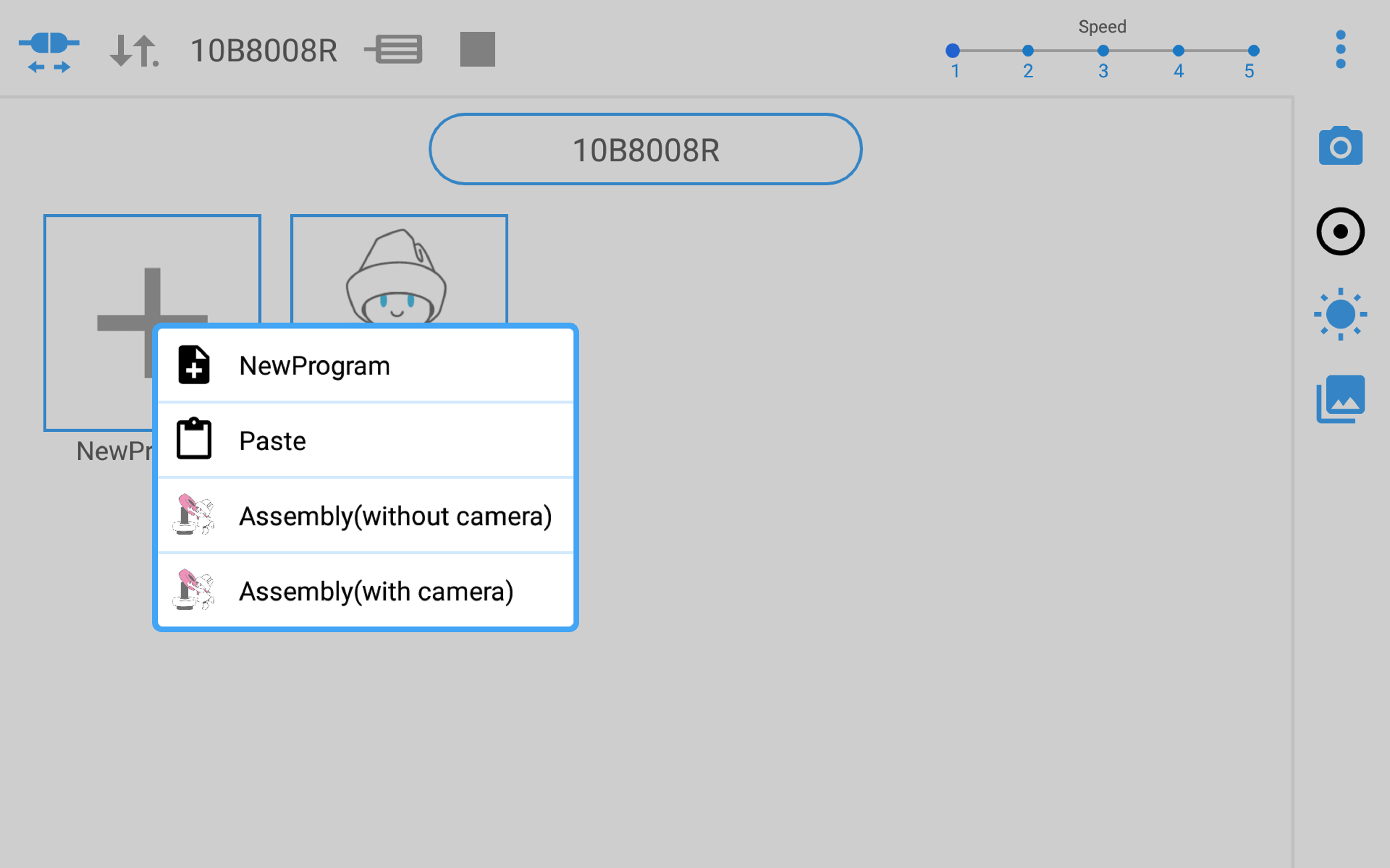 When [NewProgram] is tapped in the basic window of Cobotta World, the following items are displayed.