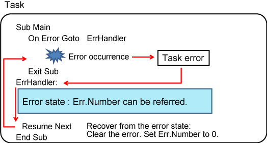 - Task errors are controlled by Err objects.