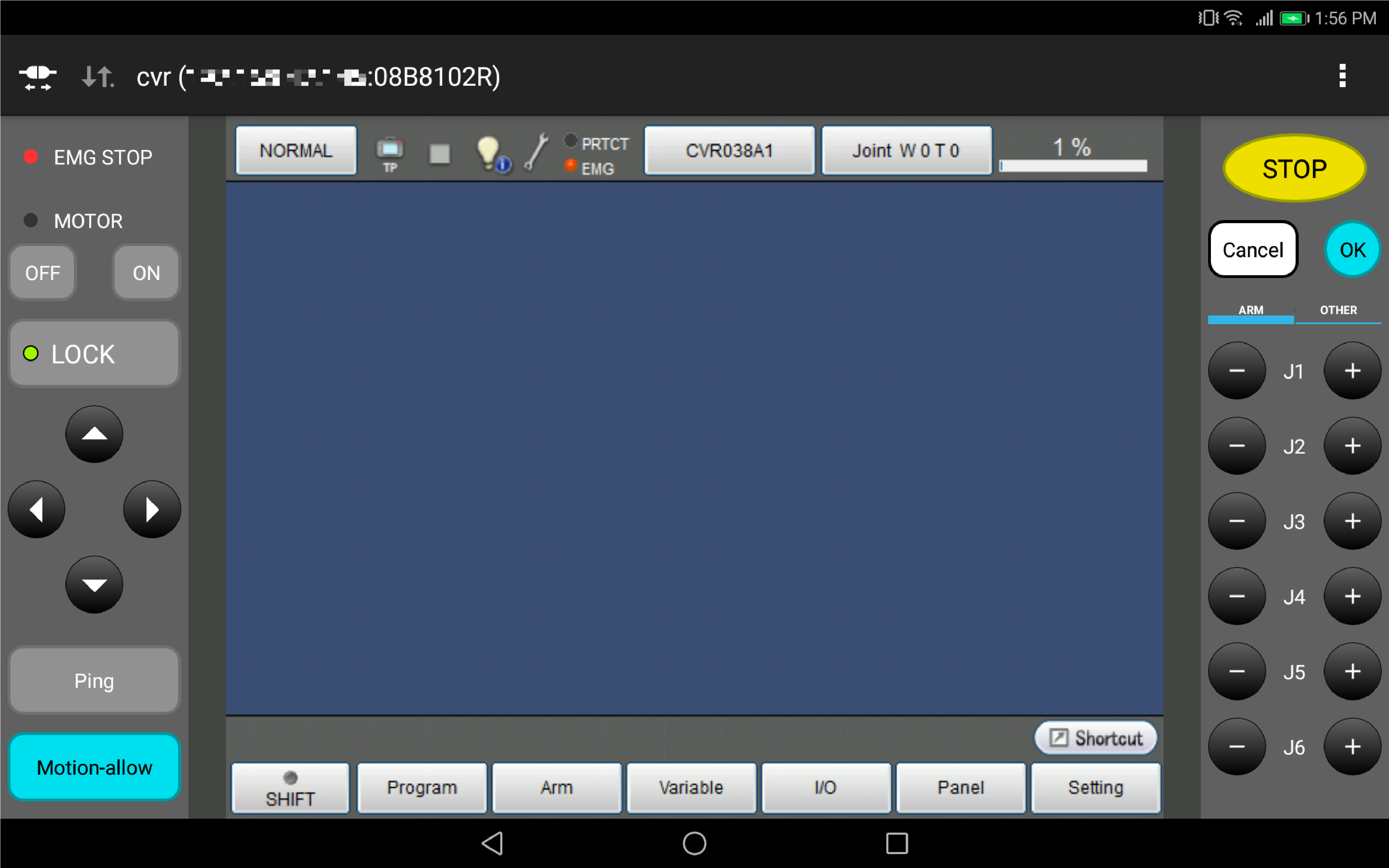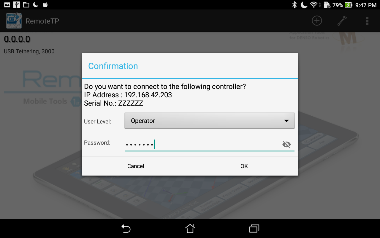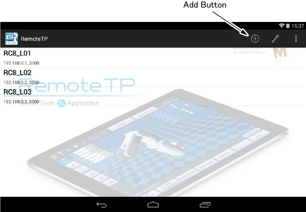 • When a tablet which has not connected to any COBOTTA before is connected to a COBOTTA with USB cable, the COBOTTA is turned on.