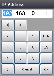 Numeric keypad displayed when entering IP address |