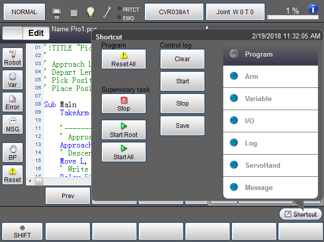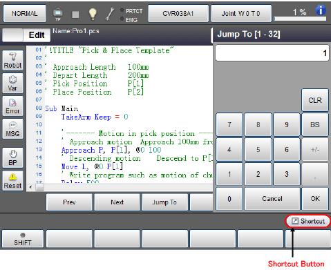 Press [Shortcut] button in any process screen to display [Shortcut menu] window.