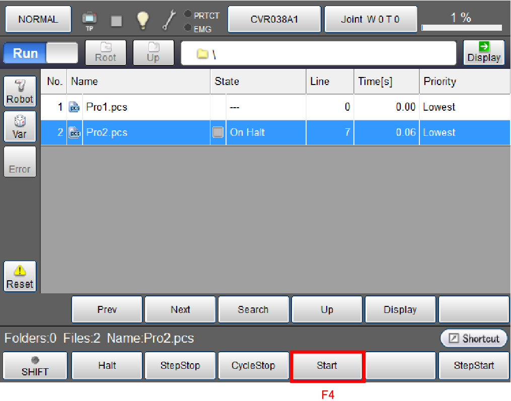 Make sure that the selected program is highlighted, and press [F4 Start].