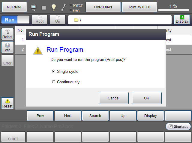 The system message as shown in the next step will be displayed, select [Single-cycle] in the [System message] dialog box, and press [OK].