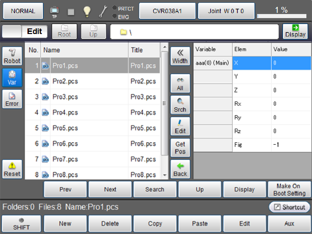Register the current position to P-, J-, and T-type static variables. Once this button is pressed, a confirmation window for data reading is displayed. Press [OK] to read data. To cancel data reading, press [Cancel]. This button is displayed only when the current position can be registered in variables. |
