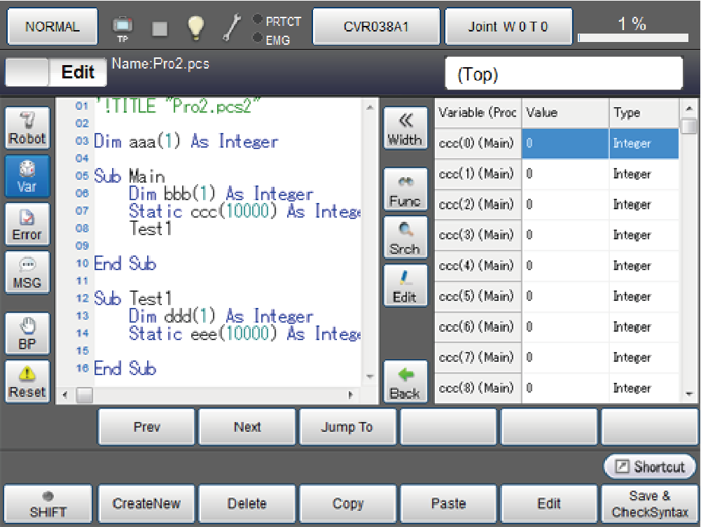 | Func | Display all the variables available within the procedure. (except for global variables) | |