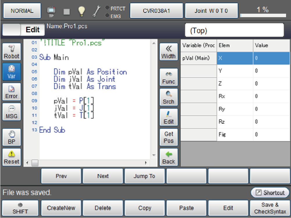 Register the current position to P-, J-, and T-type static variables. Once this button is pressed, a confirmation window for data reading is displayed. Press [OK] to read data. To cancel data reading, press [Cancel]. This button is displayed only when the current position can be registered in variables. |