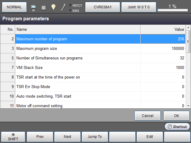 Operation path : [F1 Program] - [F6 Aux] - [F5 Program parameters]