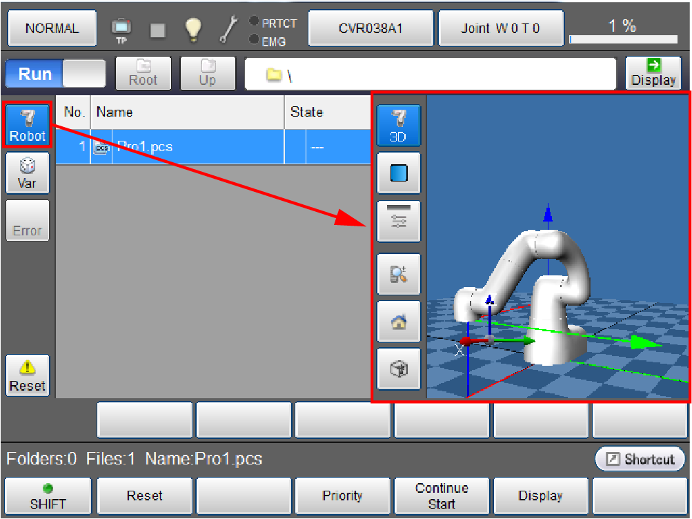 Robot Display 3D image of the robot during the machine lock. For information about operation keys, refer to " Displaying Current Position Information and 3D Image of Robot ".