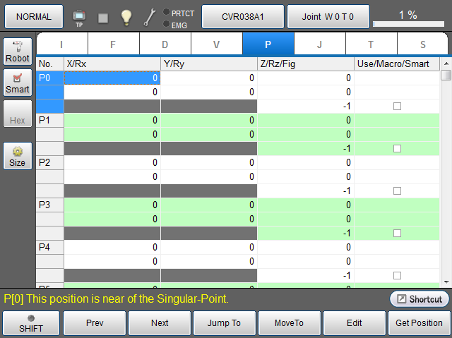 | [F6 Get Position] | Obtain the current position of the target robot and save the position data to the specified variable. This operation is available only for J-, T-, and P-type variable. |