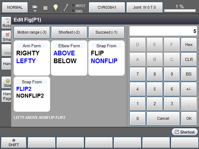 The motion figure (FIG) of the robot can be set in respective variables of T type and P type.