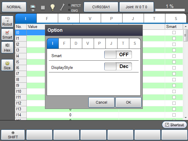 | [Smart] | In each variable, display only variable number whose checkbox for "Smart" is checked. |