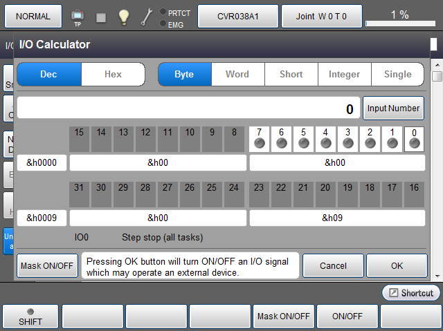 Enter the bit calculation value with numeric keypad, and press [OK] to set the bit corresponding to the entered value to ON.