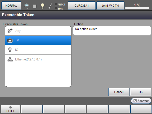Press [F1 Executable Token] to display the following [Executable Token] window.