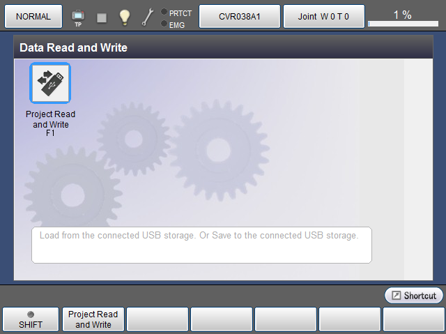 | [F1 Project Read and Write] | Read project data from USB, or write it to USB. |