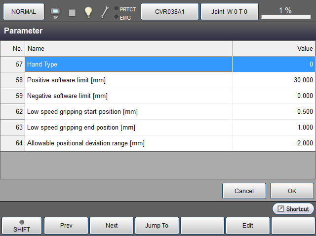 To open the hand parameter screen shown below, press [F2 Parameter].