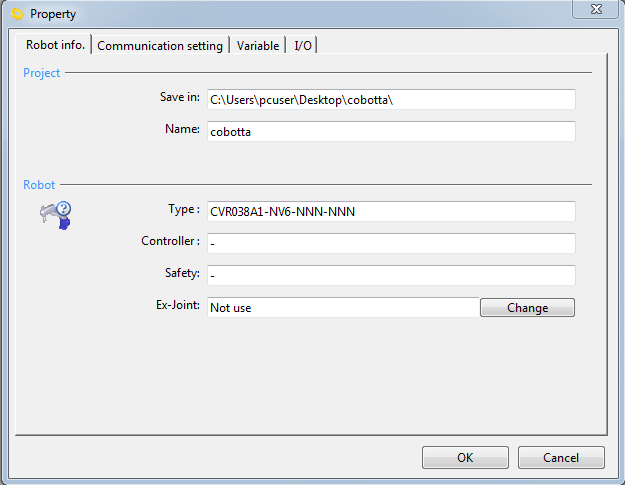 The number of each variable needs to be same as that of the COBOTTA's project.
