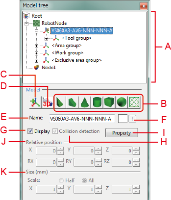Pressing this button will display Model setting dialog box that configures properties of a model selected in the object tree.