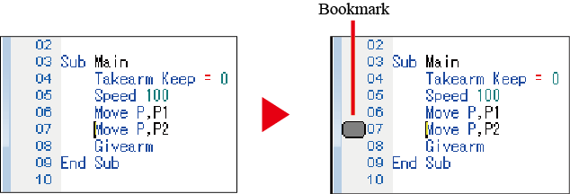 The following is the procedure for setting a bookmark on the line under the cursor.