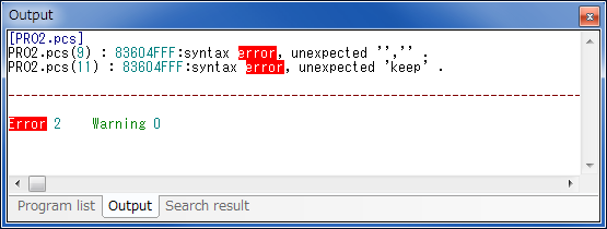 Double-clicking on this message highlights the corresponding line in reverse in a Program edit window.