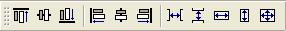 These buttons assign uniform positioning, spacing, or size to the selected parts.