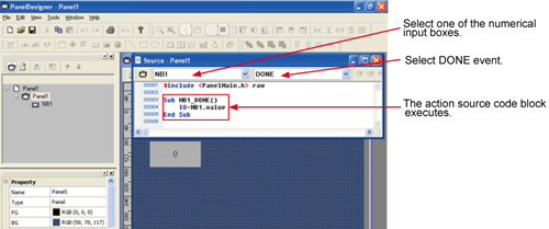 The Done event is added to the "Numerical input box" and "Text box" Pressing the OK button on the numerical input box or the text box executes the Done event.
