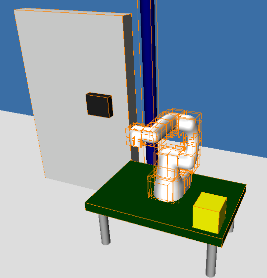 The Virtual Fence is a collision prevention function. Monitoring target objects, such as robots, tools, and equipment, are modeled by WINCAPSIII. This function is available in Ver.2.5.* or higher.