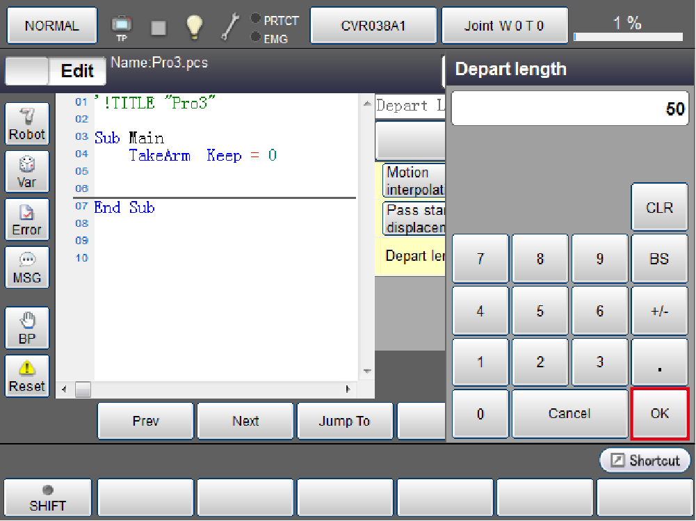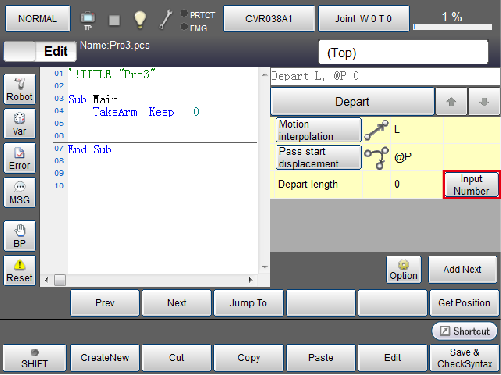 Set the depart length. In the Depart length line, press the [Input Number] button.
