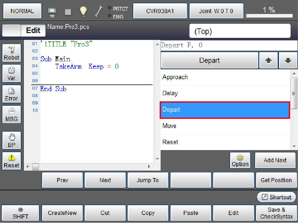 Depart command has been inserted in the seventh line.
