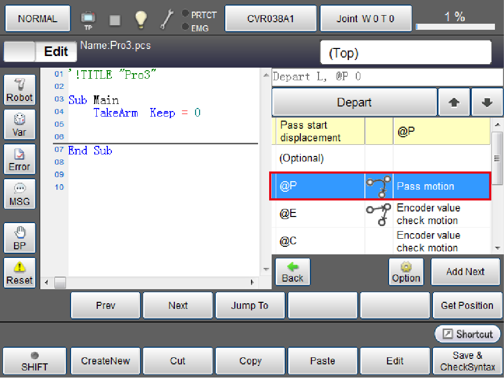 It is impossible to obtain the current position if any of variable, function, or macro definition are used as elements of P-type, J-type, or T-type.Move P, P( 446.7207, 275.725, 329.036, 180, -0.0122849, -148.3163, 5 )Move P, P( aaa, 275.725, 329.036, 180, -0.0122849, -148.3163, 5 ) 'Impossible to obtain the position