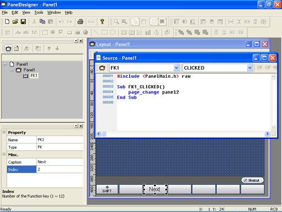 This part resembles buttons in assigning captions to pendant function keys and action source code to function key presses, but it lacks the position properties of other parts because the pendant function keys have fixed positions, specified by number (.index).