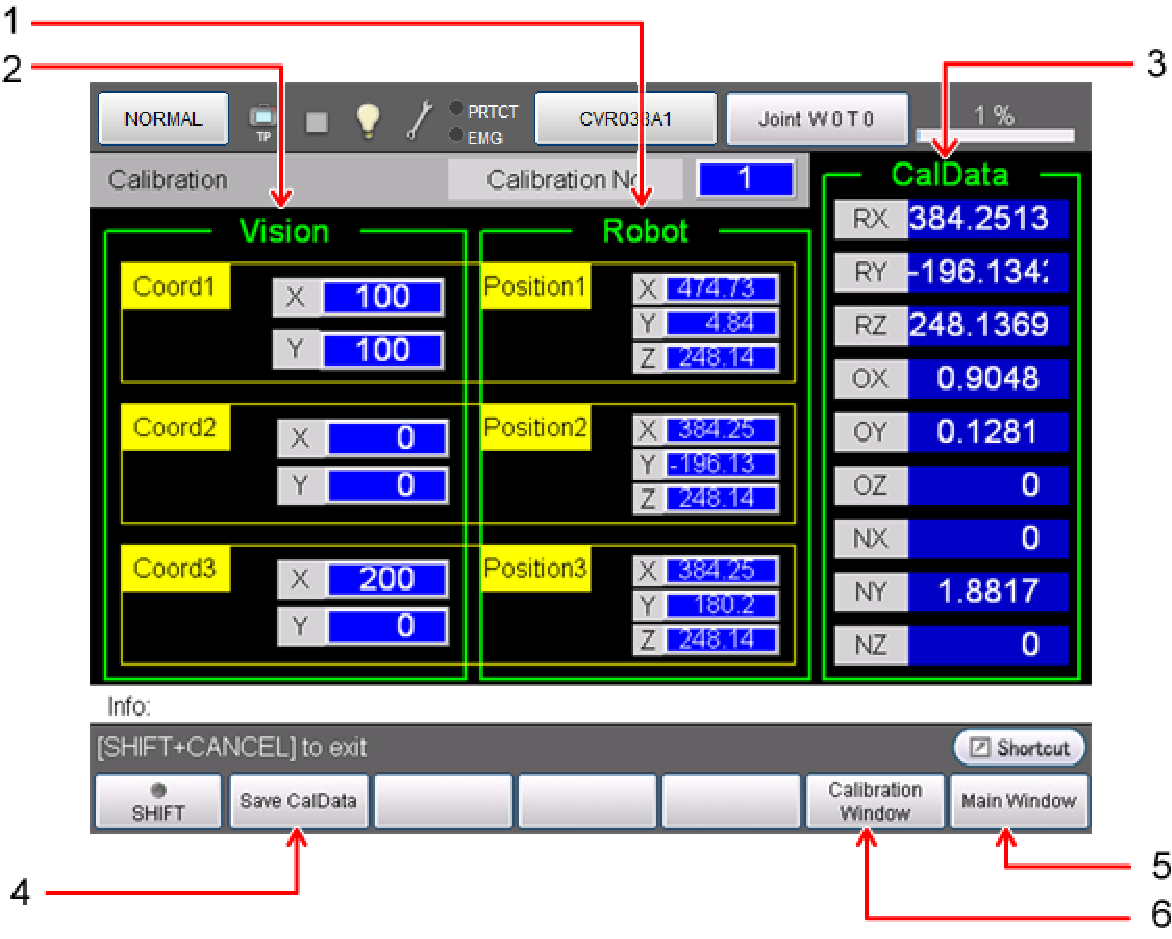 | 5 | Shows the vision coordinates of points 1 to 3. |