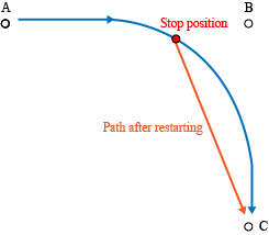 the robot that stopped at D will run toward B after restarting but the robot that stopped at E will run directly to C, instead of moving toward B.