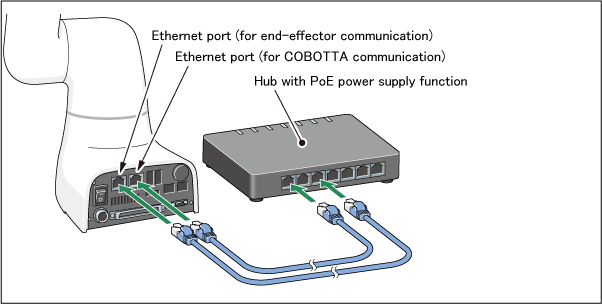 Therefore, there is need to connect the Ethernet port (for end-effector communication) and the Ethernet port (for COBOTTA communication).