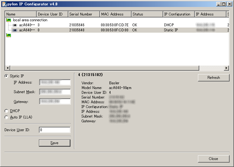 Set IP address, ID and a trigger mode with the pylon IP Configurator.