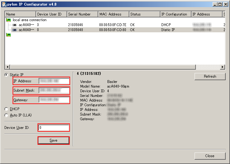 Set IP address, ID and a trigger mode with the pylon IP Configurator.