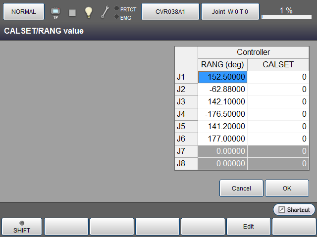 Enter RANG and CALSET values of robot directly from numeric keypad to set them.