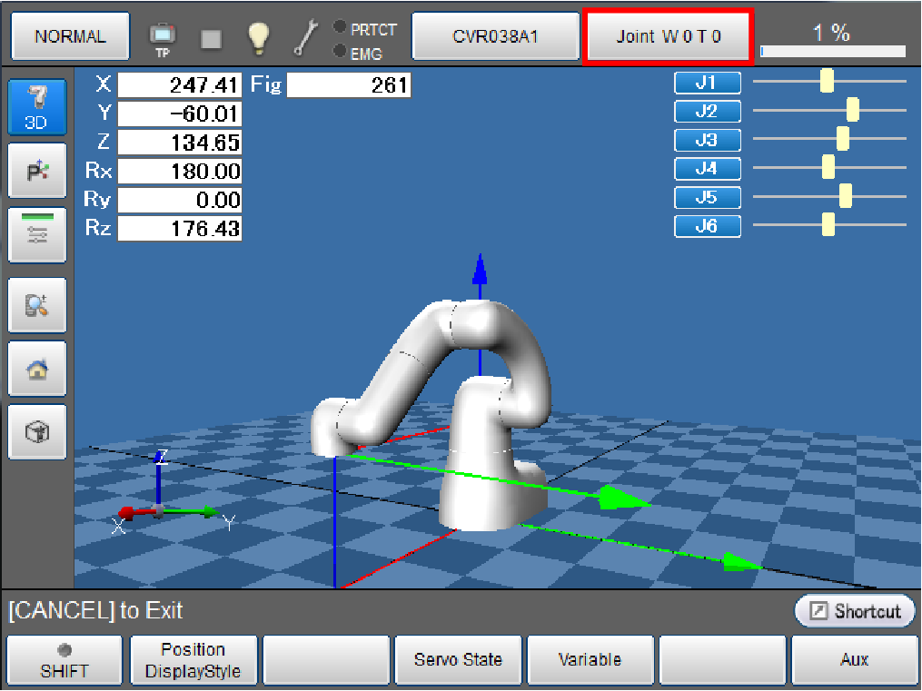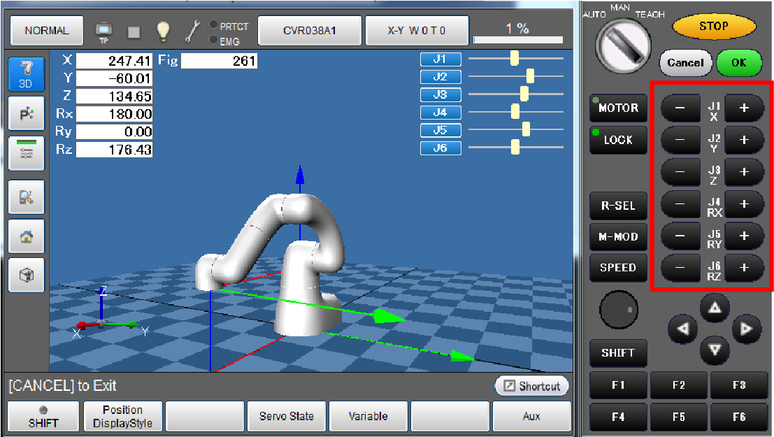 The arm can be moved using key operation of Remote TP/Virtual TP.