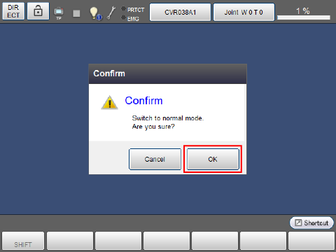 Press the button with "NORMAL" indicated in the Remote TP/Virtual TP screen.