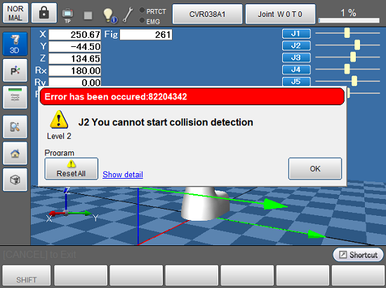 - When monitoring is enabled in one of the following conditions, error "0x8420434*: J* You cannot start collision detection" may occur.