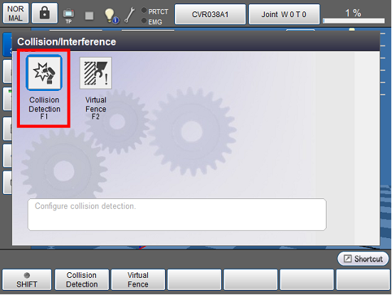 Use the Remote TP/Virtual TP to enable/disable the collision detection function for each axis. The initial value is set to "Enable."
