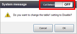 When the system message is displayed, select [ON] to enable the collision detection for all axes or select [OFF] to disable the detectionfunction, and then press [OK].